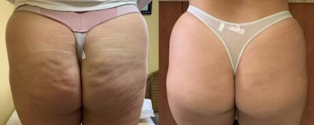 Já tentei várias coisas para a minha celulite, mas nada funcionou tão bem quanto esta. Minha foto de antes me deixa com vergonha, mas agora minha pele está muito mais firme.