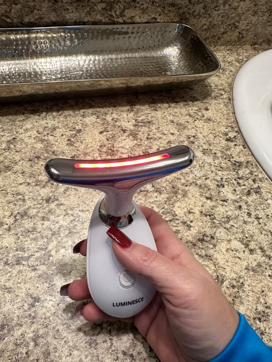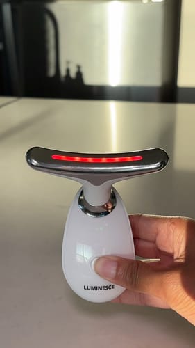 Apresentando o LUMINESCE FACIAL 7 EM 1: sua solução definitiva em casa para uma pele e estrutura facial impecáveis.